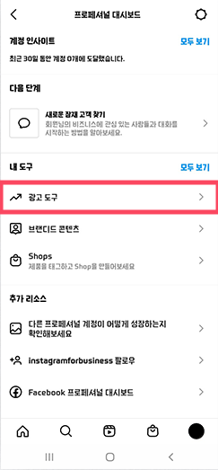인스타그램 설정 > 계정 > 프로페셔널 계정으로 전환