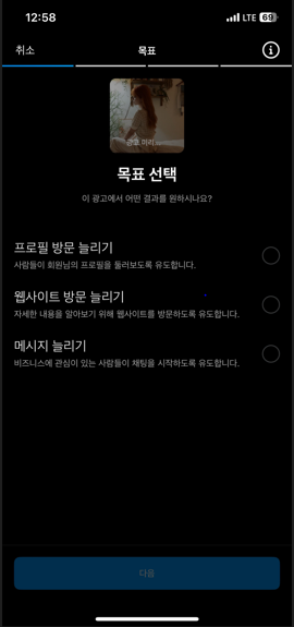 광고에 이용하는 콘텐츠가 일반 이미지 게시물, 릴스, 스토리인지 유형이 다를 뿐 진행 방식은 같은데요.
