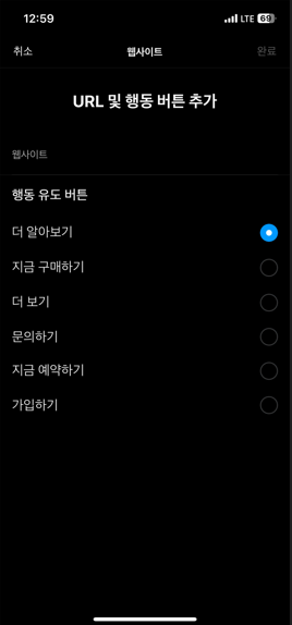 인스타 프로필보다는 제품 판매 페이지 등으로 바로 방문을 유도하고 싶다면 웹사이트 방문 늘리기,