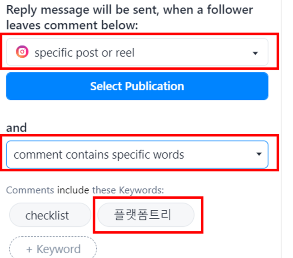 12) 특정 콘텐츠를 선택한 후 원하는 키워드 설정