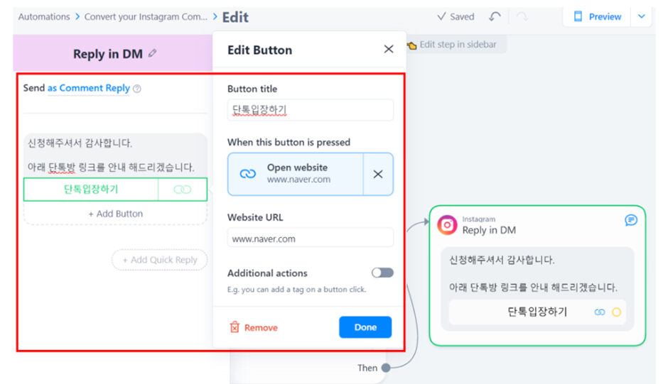 14) 자동으로 DM을 보내줄 메시지와 링크를 수정