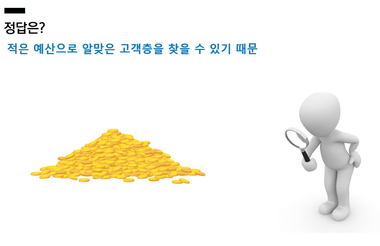 제가 생각하는 답은 바로 적은 예산으로도 알맞은 고객층을 찾을 수 있기 때문입니다.