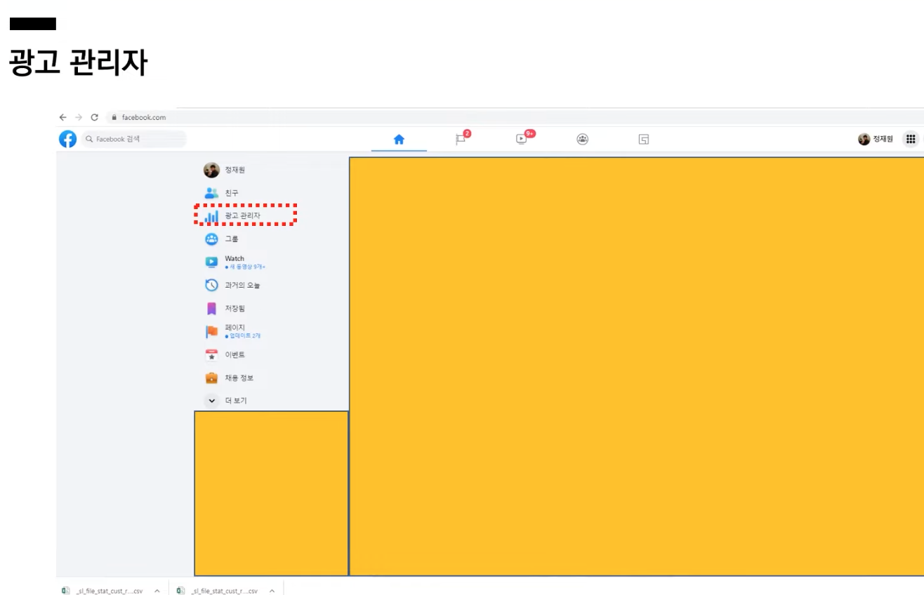 왼쪽에 보시면 광고 관리자 라는 버튼이 있습니다.