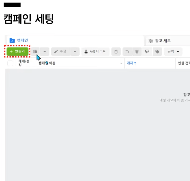 자 그러면 이제 광고 세팅하는 방법을 알려드릴게요.