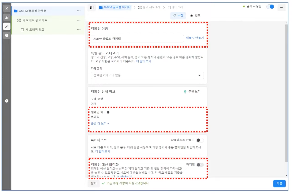 캠페인 예산 최적화 라는 글씨가 맨 밑에 보이실 텐데요.