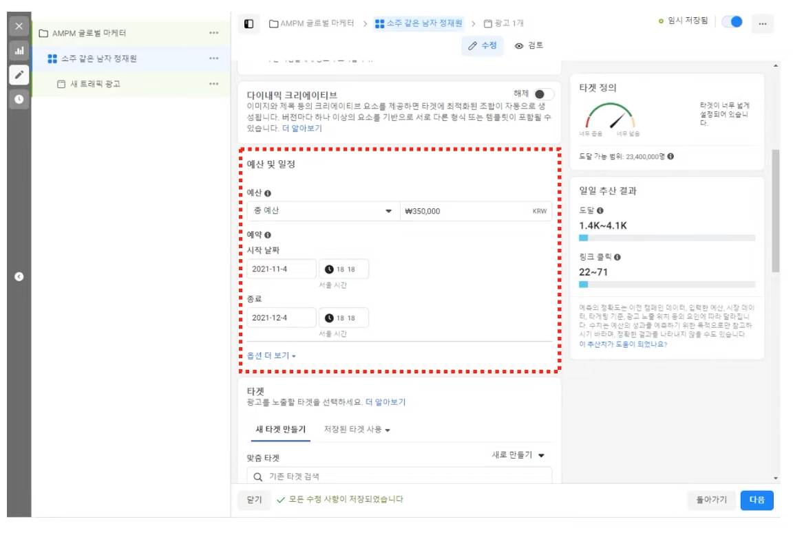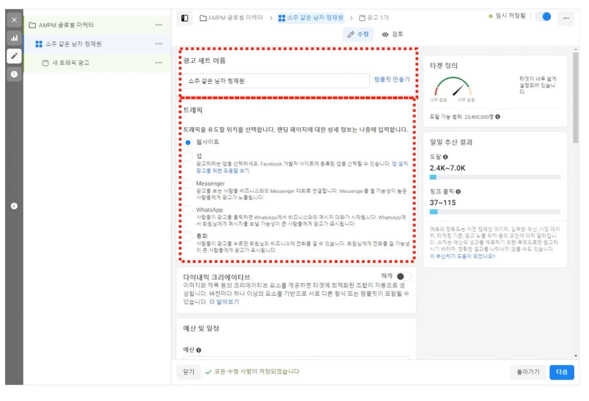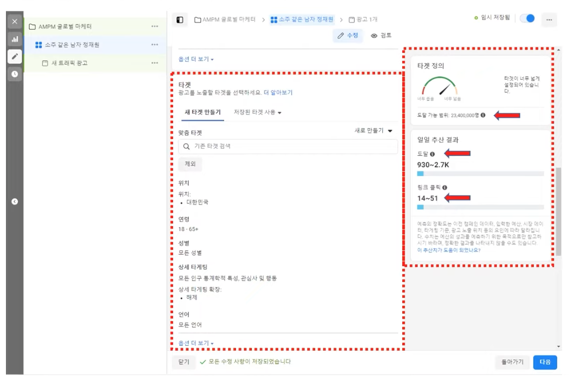 자 여기까지 세팅이 완료되었다면 이제 타겟층을 설정하셔야 하는데,