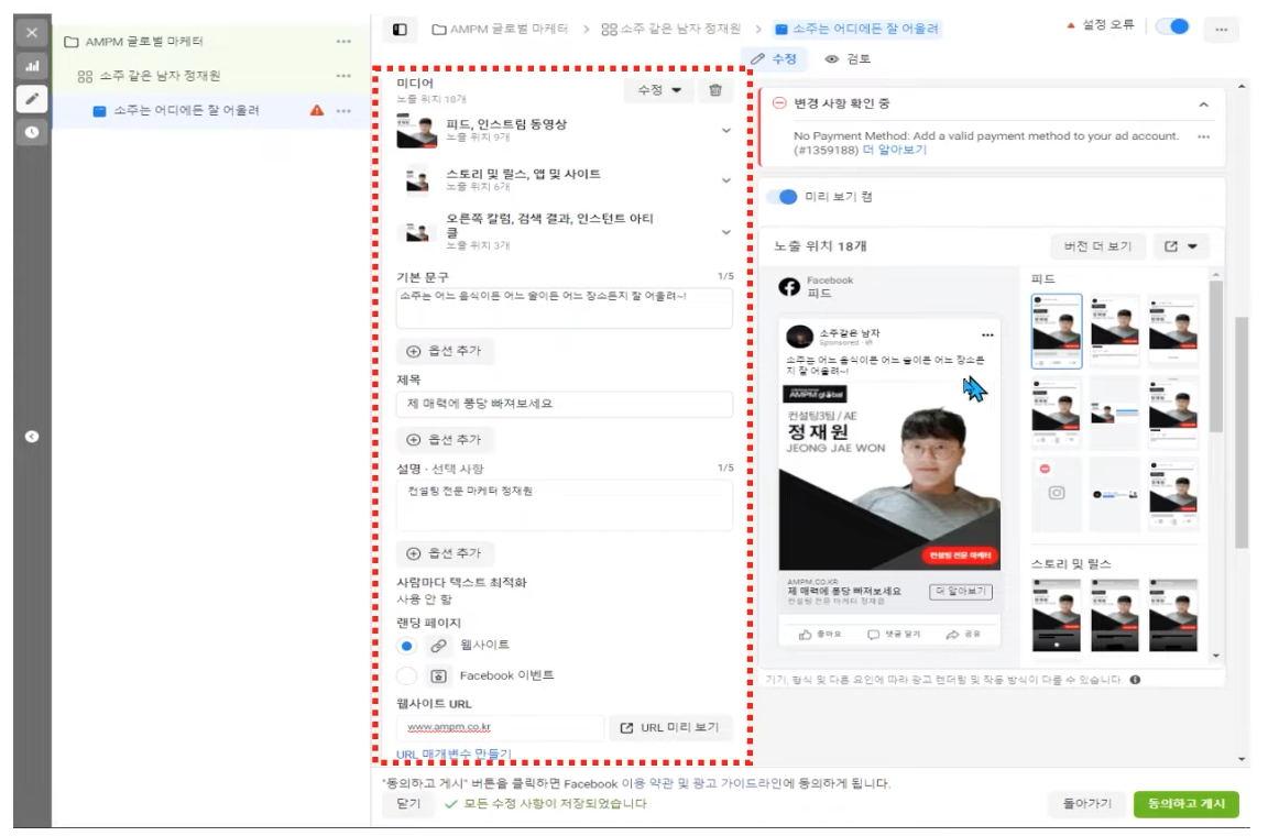 동의하고 게시 버튼을 클릭 하게되면 바로 광고가 진행이 되는 것입니다.
