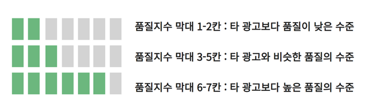 품질지수는 7단계(7칸)로 구성되며 막대 개수가 의미하는 바는 아래와 같습니다.