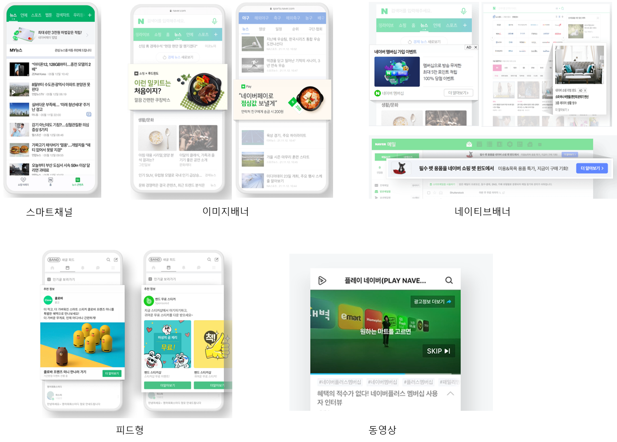 다시 말해, 배너를 게재할 위치가 네이버 메인 이미지인지, 밴드인지, 스마트채널인지 등 파악 해야 한다는 것입니다.