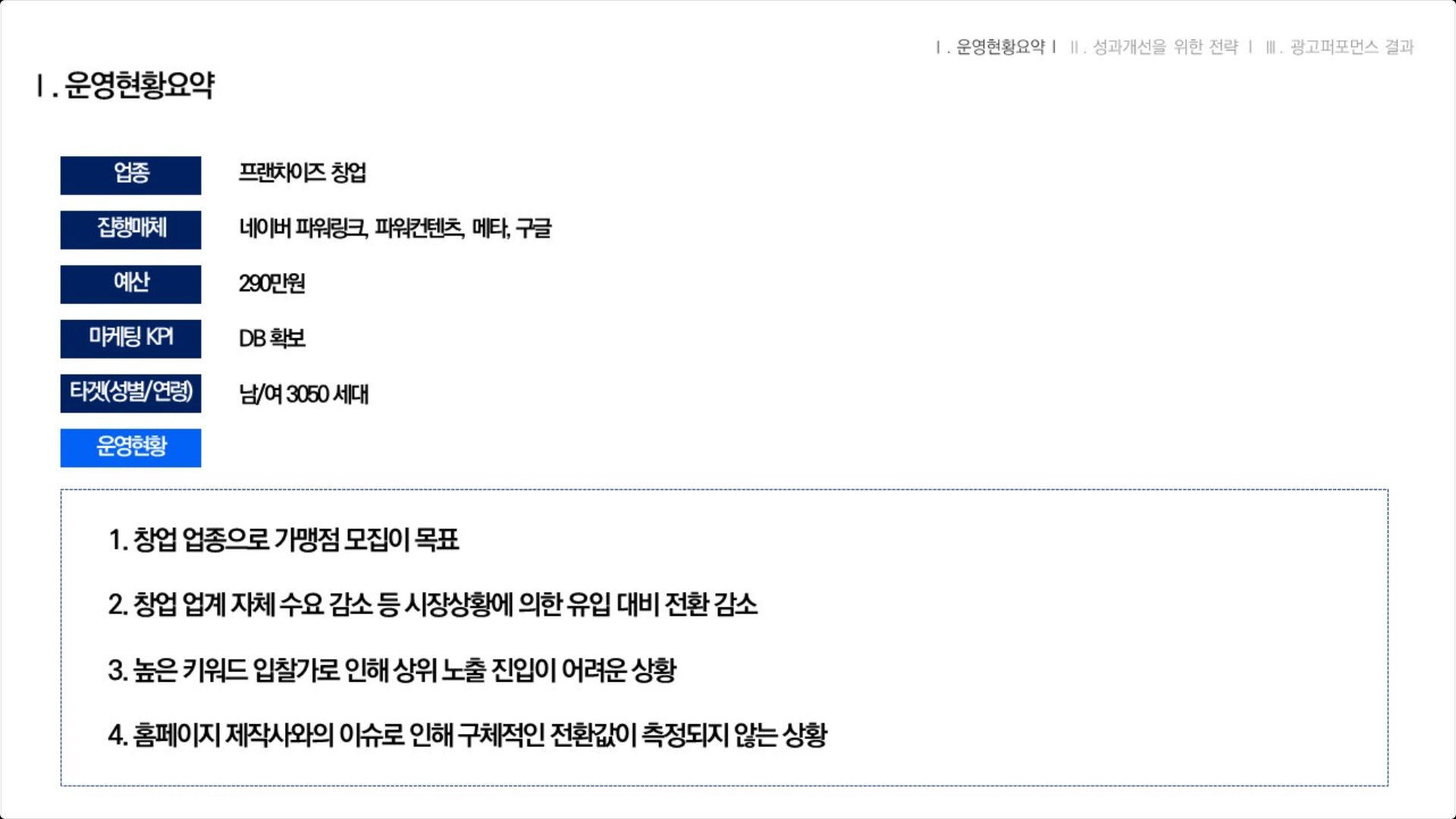 키워드 그룸을 세분화 하여 고효율 키워드를 발굴하고, 확장소재 테스트를 통해 고효율의 셋팅을 제시하였습니다.