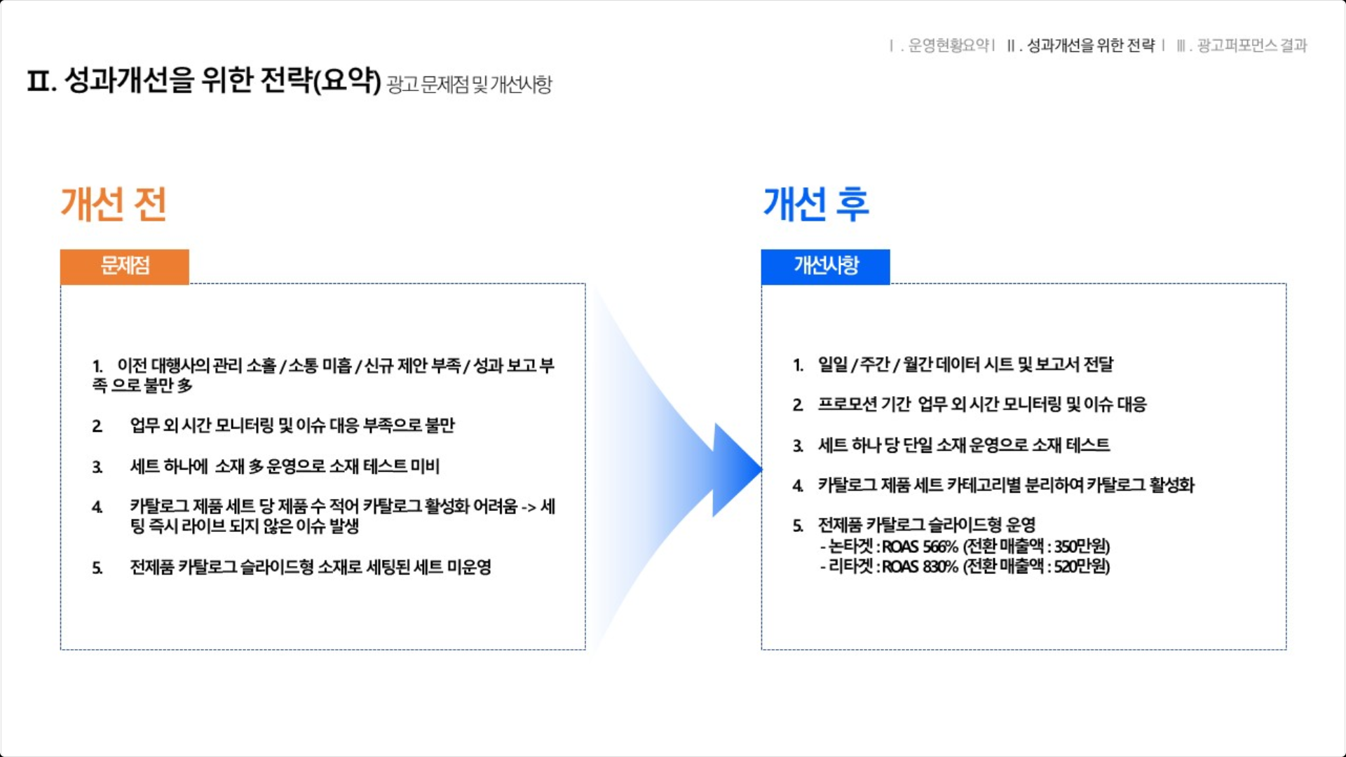 또한 프로모션 기간에는 업무외 시간 관리를 통해 타이트한 모니터링으로 ROAS를 390%에서 4330%까지 개선하였습니다.