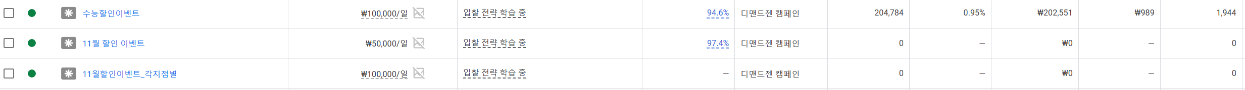 구글 디스플레이 광고와/ 디맨드젠 광고가 광고그룹 운영가능 광고는 전부 승인이 났는데