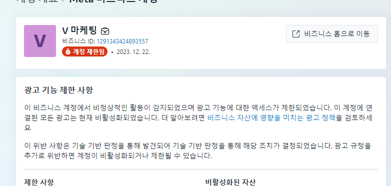 영상 5분에 비지니스 계정 생성에 있어서 이미지와 같은 문제가 발생하여 문의 드립니다.