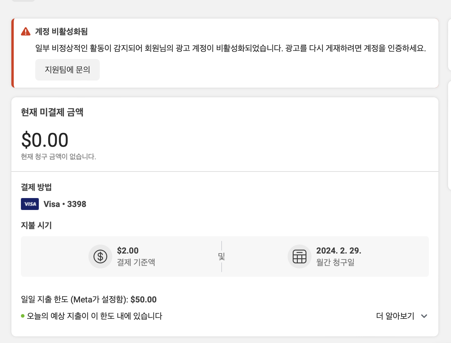 안녕하세요! 퍼포먼스본부3팀 김민경입니다:) 결제에서 가장 많이나는 오류 중 하나는 해외결제차단 되어있는 카드등록인데요! 혹시 이 부분을 카드사에 문의해보셨을까요! 카드사 확인 후 다시한번 카드결제 확인해주세요!